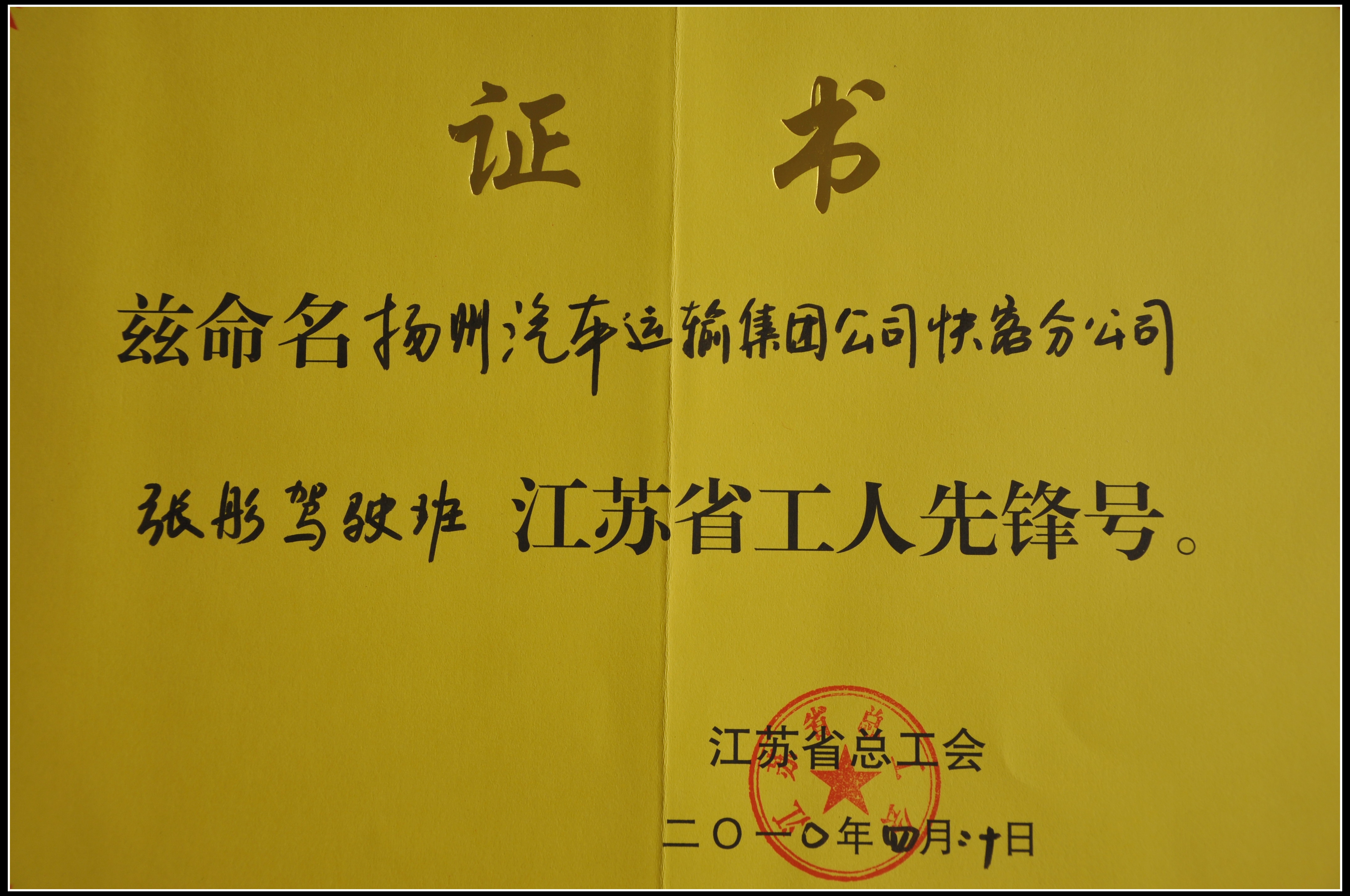 集團公司快客分公司張彤駕駛班被江蘇省總工會評為工人先鋒號