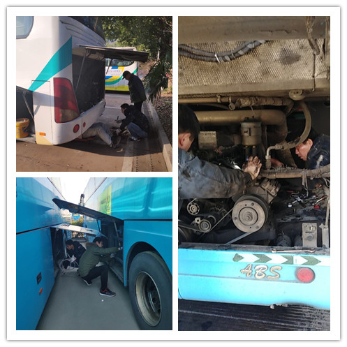 元月22日,春運第二天,上午8時許,修理廠生產客服春運服務電話響起,外事旅游公司車輛因打氣泵氣管發生故障,拋錨在路口,任務很快下達到修理廠服務站技術總監、共產黨員熊俊身上。接手任務后,他立即整裝出發,趕到現場。刺骨的寒風呼嘯著,但是熊師傅完全不顧作業環境惡劣,脫下羽絨服,身著單衣鉆進車肚,連續2個小時的奮力搶修,中午11點多,終于修復了故障車輛。而正當他準備返回時,手機又再次響起,旅游公司車輛發生故障拋錨在江都邵伯,熊俊接到任務,顧不上吃一口熱飯,便又帶領2名青工張杰、曹磊奔赴邵伯現場。經過3個小時的緊張搶修,該車輛得以安全返回公司。緊接著他們又馬不停蹄的趕往汽車東站,為71隊LNG車輛充氣,檢查故障班車……盡己所能與時間賽跑的熊師傅他們,及時有效的保障了春運車輛的正常營運。