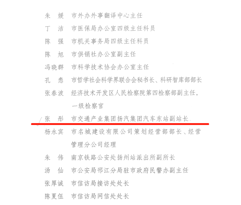 近日,揚(yáng)州市信訪(fǎng)工作聯(lián)席會(huì)議印發(fā)《關(guān)于表彰2020年度全市信訪(fǎng)工作先進(jìn)縣(市、區(qū))先進(jìn)單位和先進(jìn)個(gè)人的決定》,揚(yáng)汽集團(tuán)汽車(chē)東站黨支部書(shū)記、副站長(zhǎng)張彤獲信訪(fǎng)工作先進(jìn)個(gè)人。