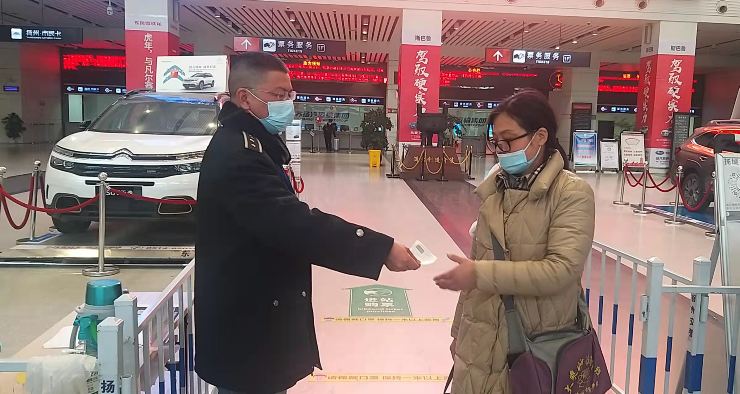 當班值班站長黃建軍見狀,趕緊上前了解情況。原來,方女士是在揚州務工的,一直身體不好,年關到了,辭了揚州的工作,準備帶著女兒回老家安徽銅陵,結果因為自己在網(wǎng)上購錯票了,等到發(fā)車前才發(fā)現(xiàn),但身上也沒有多余的錢再多留宿一晚。母女倆人著急忙慌的趕到車站,卻無計可施。