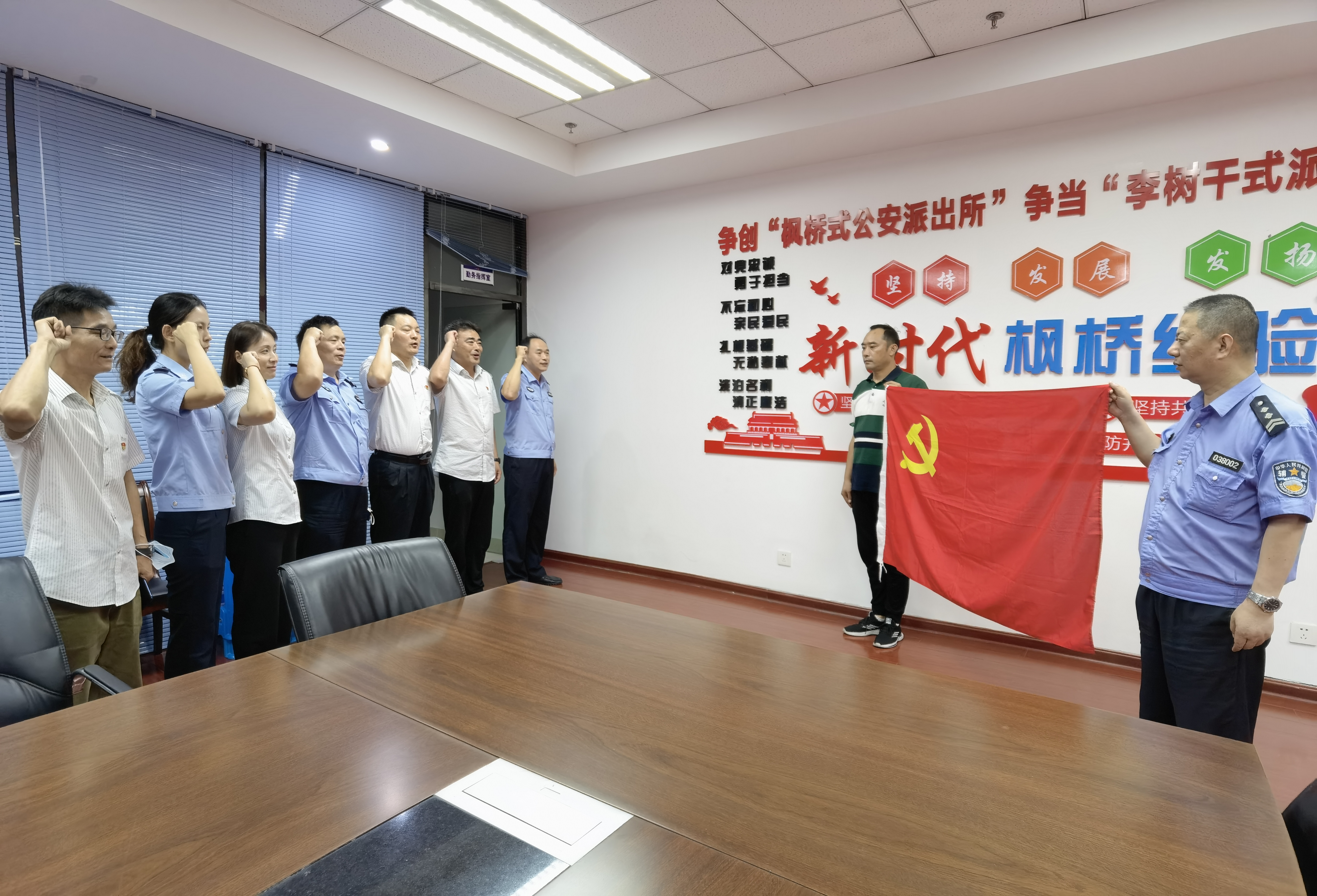 雙方支部圍繞如何利用黨建聯建加固戰斗堡壘、開展互幫互學、探索黨建工作新路徑、提升黨建質量等方面進行了座談交流,并達成了共識,加強警企溝通,有效地提高工作效率、提升工作效能,雙方黨員還一起重溫了入黨誓詞。